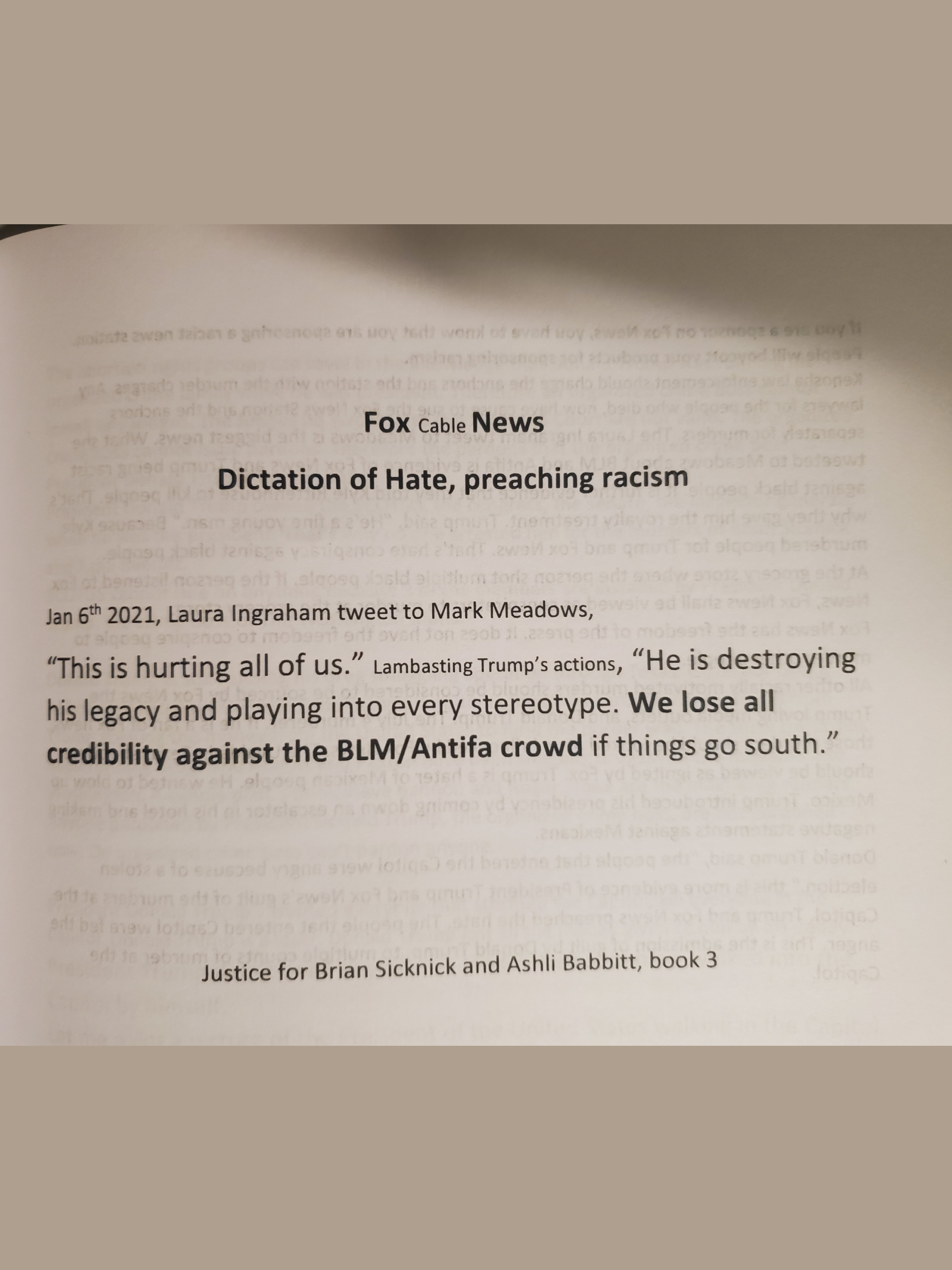 There are small parts about Fox Cable News. After the Jan 6th commission, I dedicated book 3 to Fox Cable News – Dictation of Hate preaching racism.